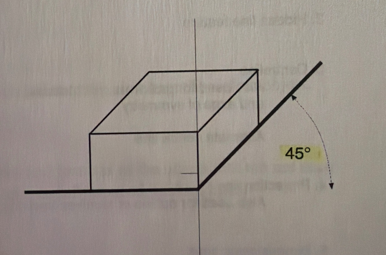 One face is at a right angle to the horizontal and the others are at an angle (usually 45 degrees) to the horizontal