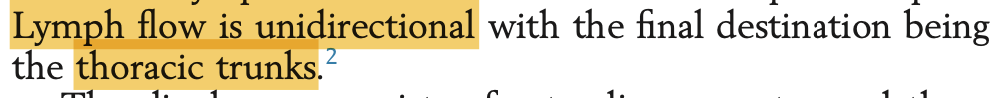 Lymph flow is unidirectional/bidirectional. What is the final destination of lymph?