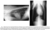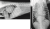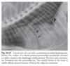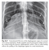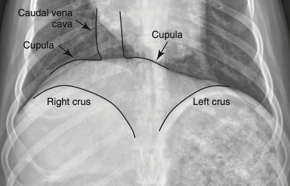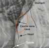 On lateral radiographs, the right diaphragmatic crus can be identified by its: