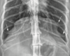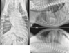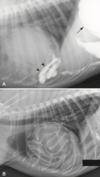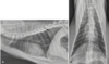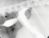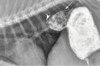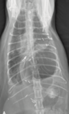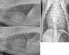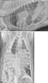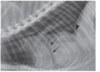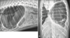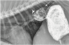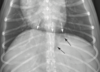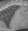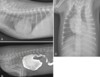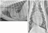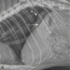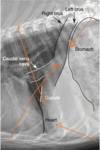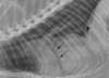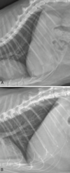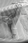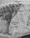 Which of the following is a radiographic sign specific to a peritoneopericardial diaphragmatic hernia (PPDH) in cats?