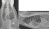 Which radiographic feature is most helpful in differentiating a diaphragmatic hernia from other thoracic abnormalities?