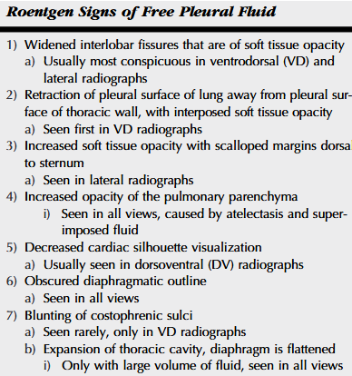 Name 7 radiographic signs of free pleural fluid.