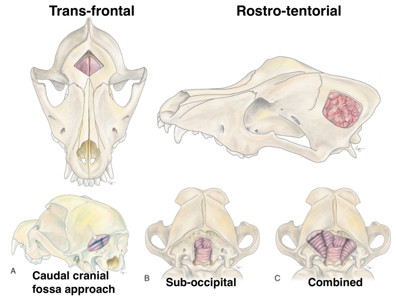 Caudal cranial fossa approach with transverese venous sinus occlusion