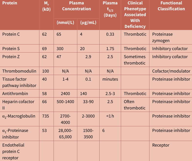 Anticoagulant protein, inhibitor and receptors overview