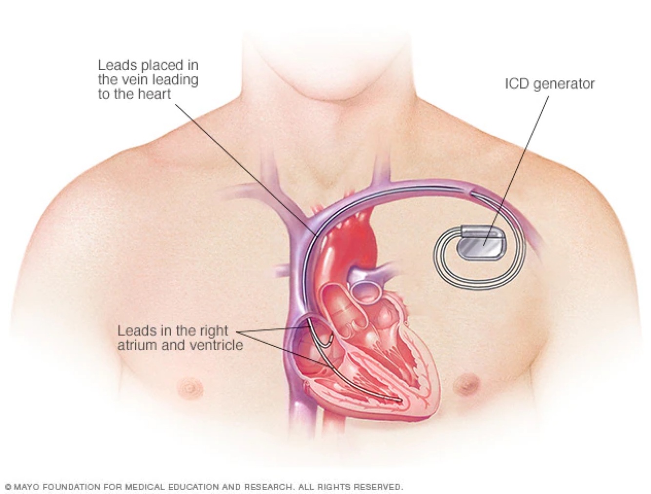 An AICD is implanted in the [BLANK] or [BLANK].