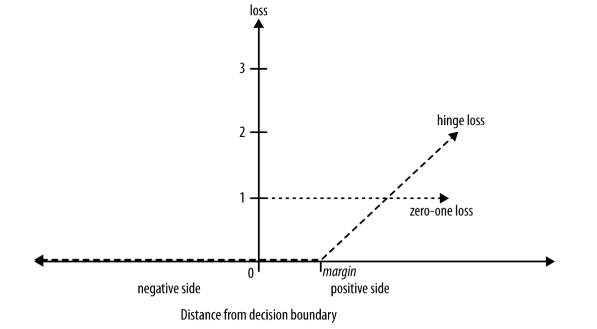 The slope of the almost-linear part tells us how quickly we are certain of the class as we move away from the line.
