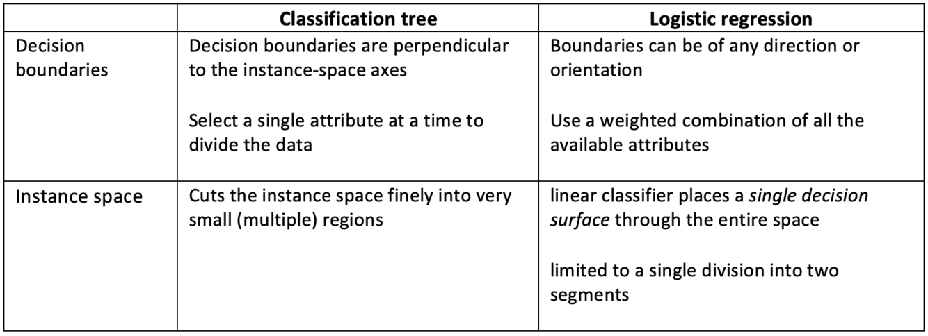 Similarity: classification trees and linear classifiers both use linear decision boundaries.