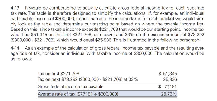 You will automatically go to the tax bracket closest to the employee’s income. In this case, it is 221,708 — the tax of 51,345 would be quickly applied to it. The remaining balance of $78,292 ($300,000 - $221,708) would be taxed at 33% as well, giving us a tax of $25,836.