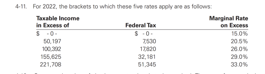 3) Multiply taxable income by tax rates to determine total tax income
