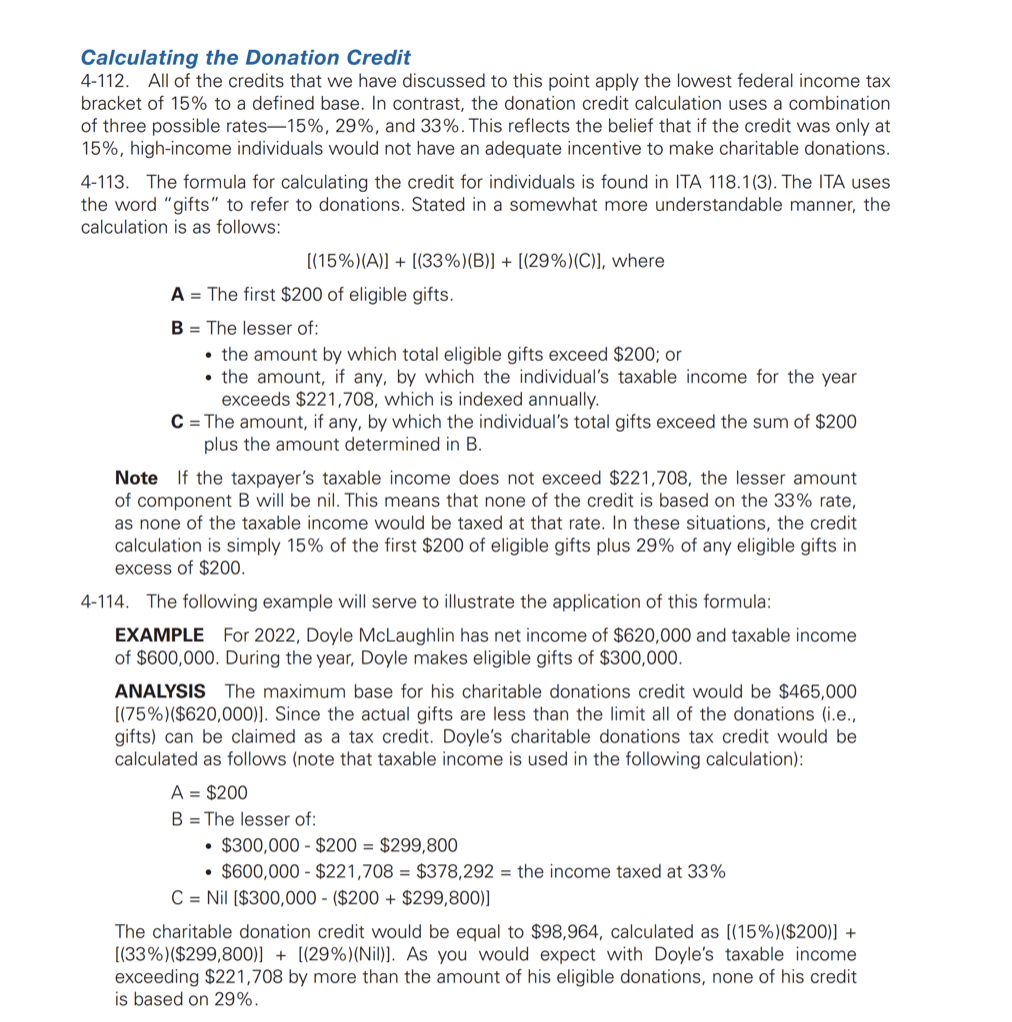 Most tax credits are calculated by using the base tax amount (15%) of the balance allocated to the credit and applying that to the net income deduction.
