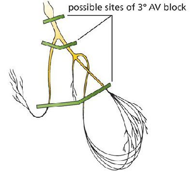 What are some possible sites for 3rd degree block?