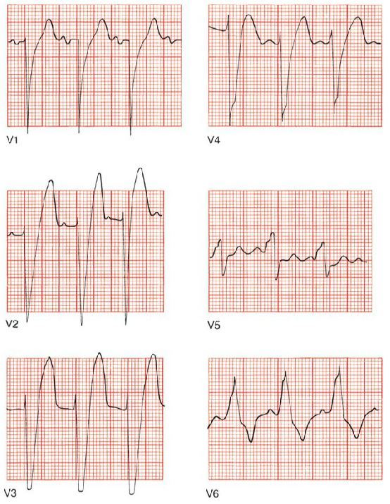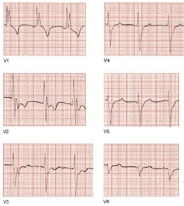 EKG from a patient with a ventricular pacemaker.