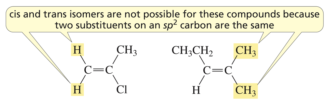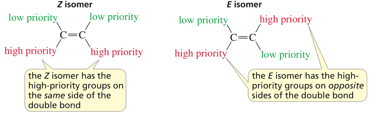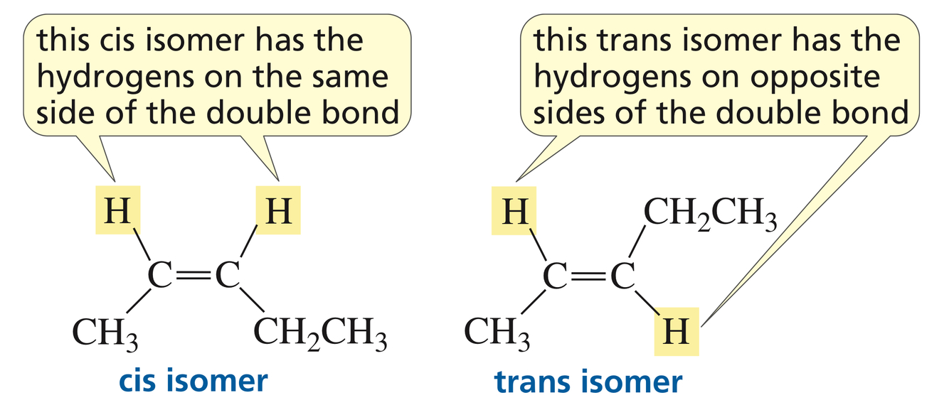 *The IUPAC prefers the E and Z designations because they can be used for all alkene isomers. Many chemists, however, continue to use the “cis” and “trans” designations for simple molecules.