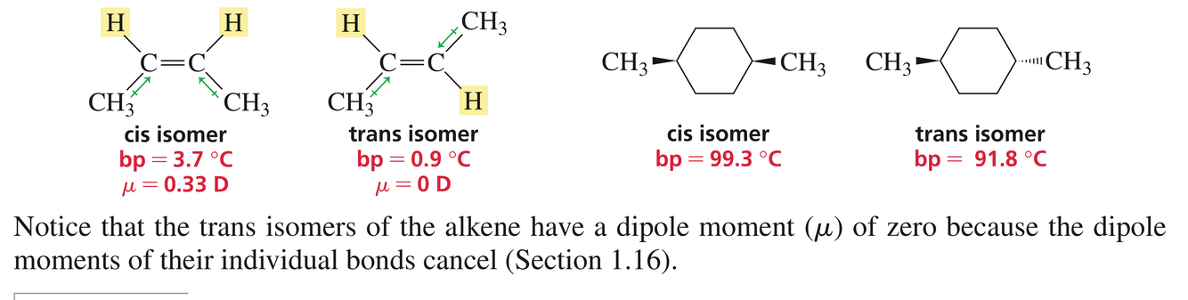 for example, they have different boiling points and different dipole moments.