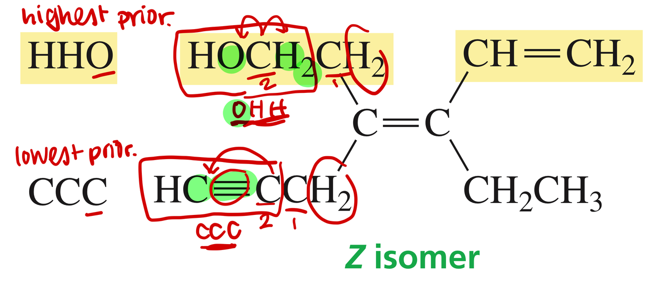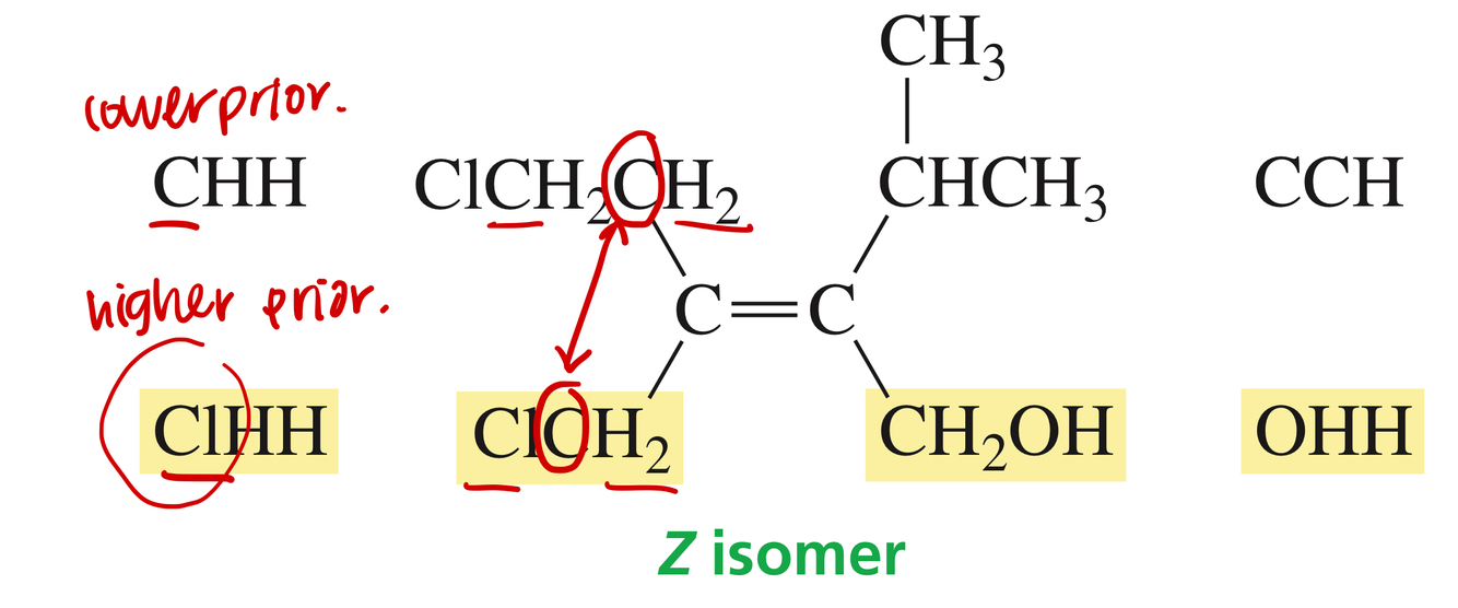 How do you determine priority in a E/Z isomer on a double bond?