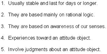 The cluster of beliefs, assessed feelings, and behavioural intentions toward a person, object, or event (called an attitude object).