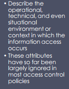 in ABAC, what is are enviromental attributes