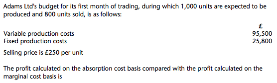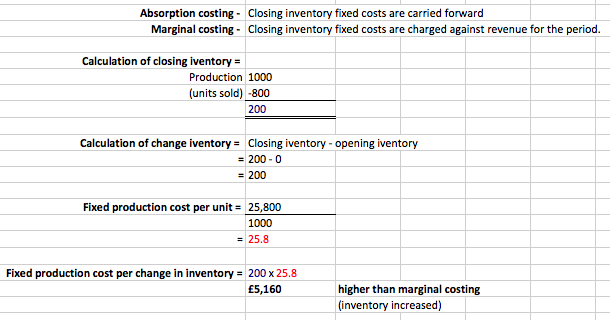 When comparing the closing inventory value reported under marginal and absorption costing when happens to profits when…