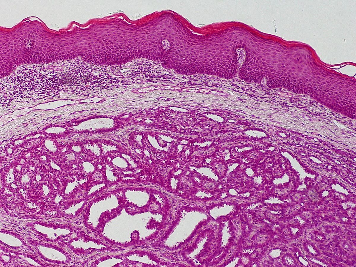 At scan, if you see a blue lobular tumor with ducts, what it is likely to be?