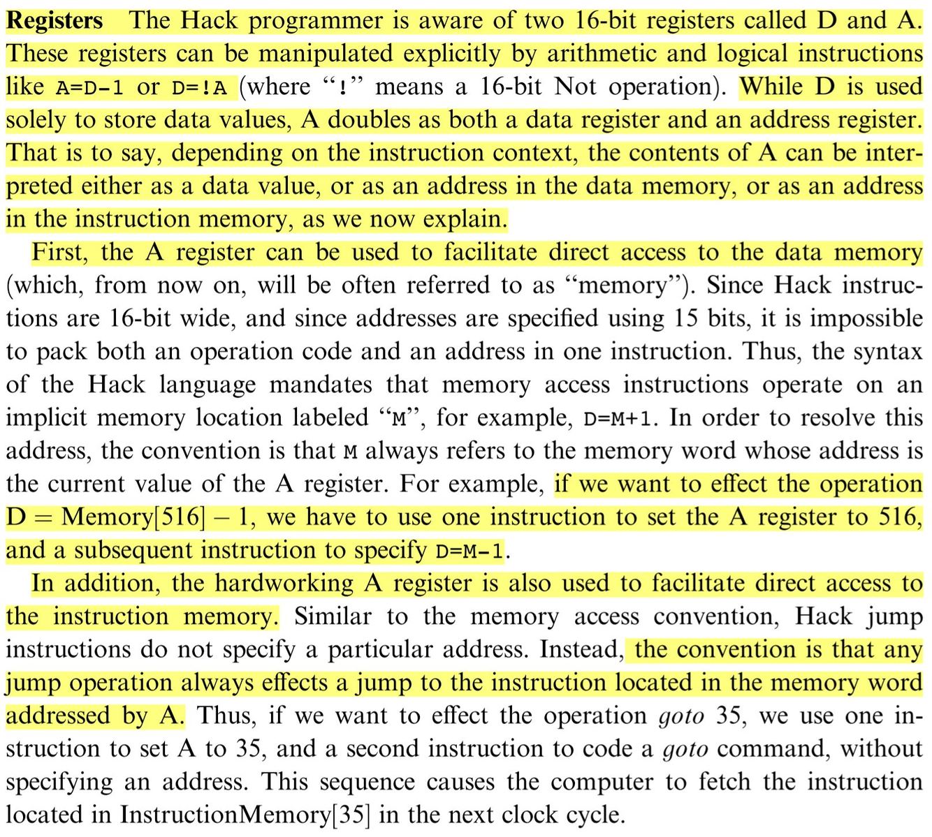 Explain the first 4 lines of the Hack code in the picture: