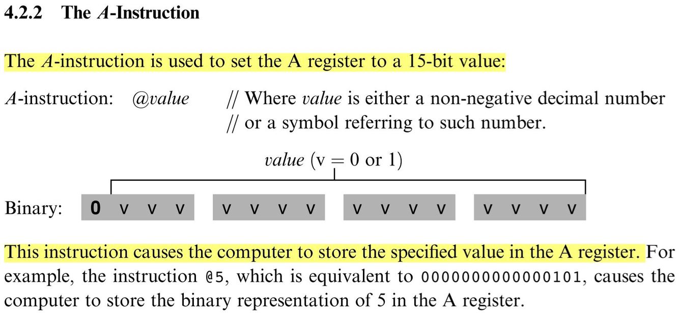 What is the A instruction in the Hack programing language?