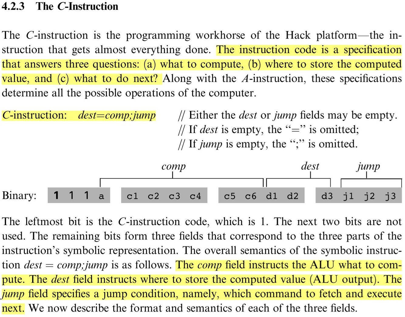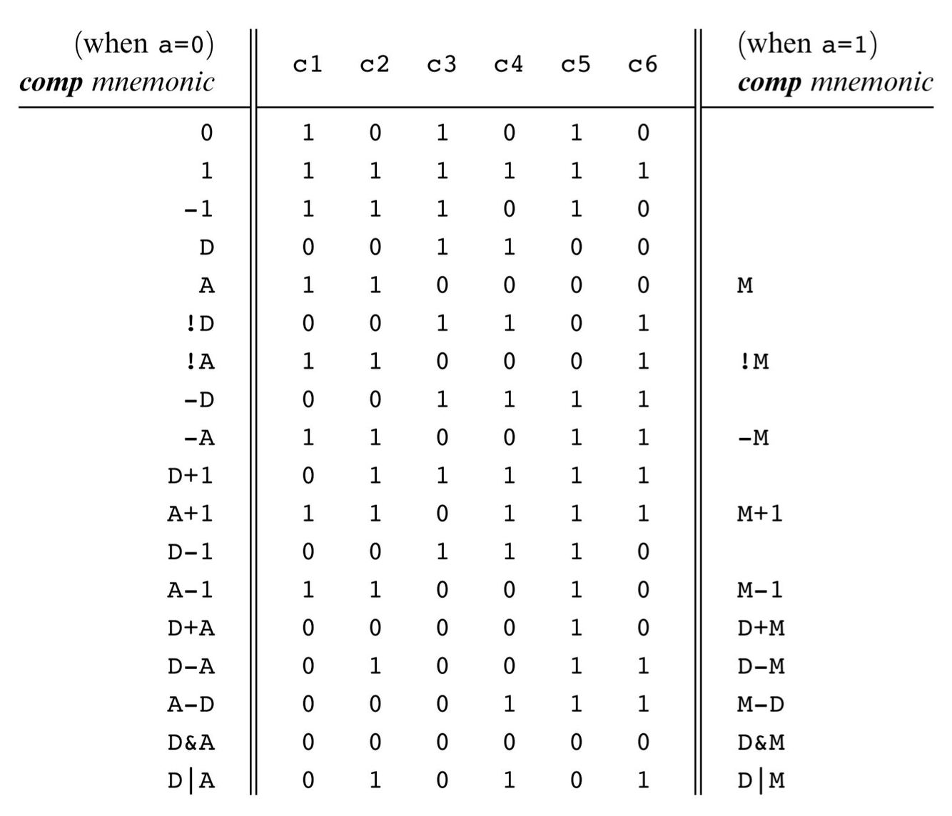 this is because the bits of the comp field in the C instruction are the bits that are fed to the ALU as control bits.