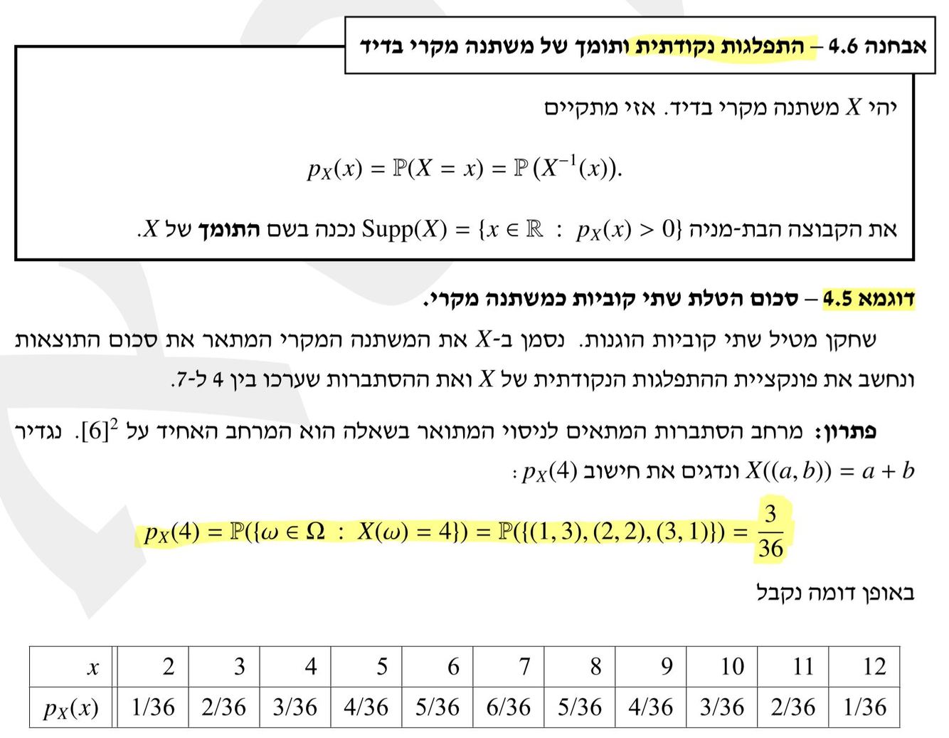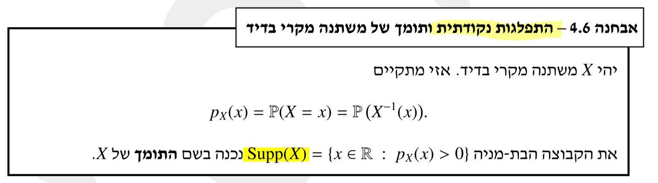 הגדירו: תומך של משתנה מקרי בדיד