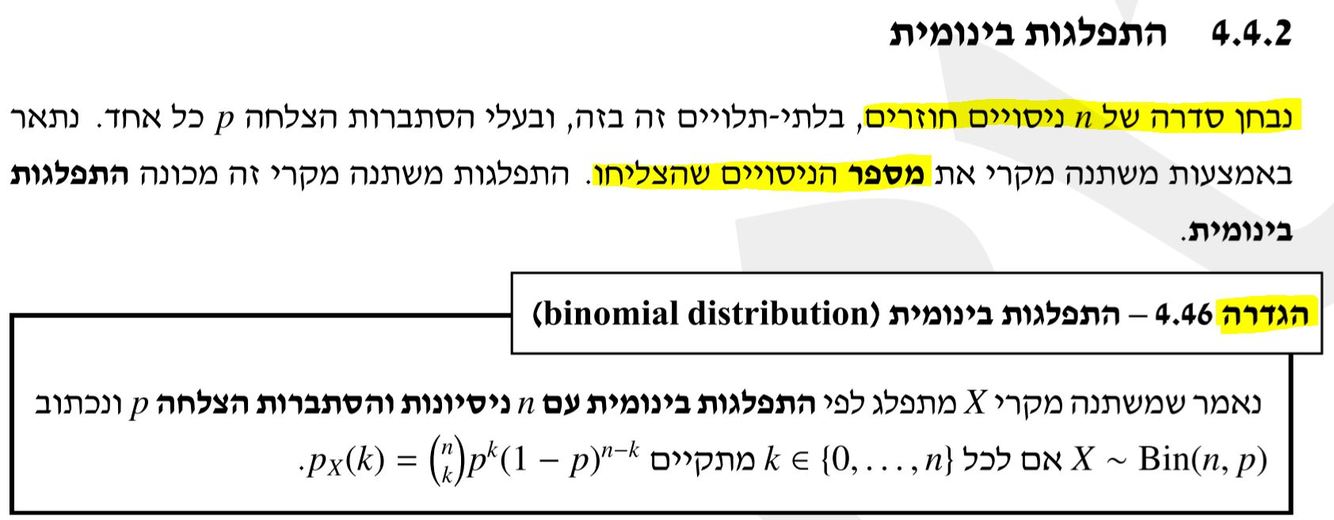 משתנה מקרי X מתפלג לפי התפלגות בינומית.