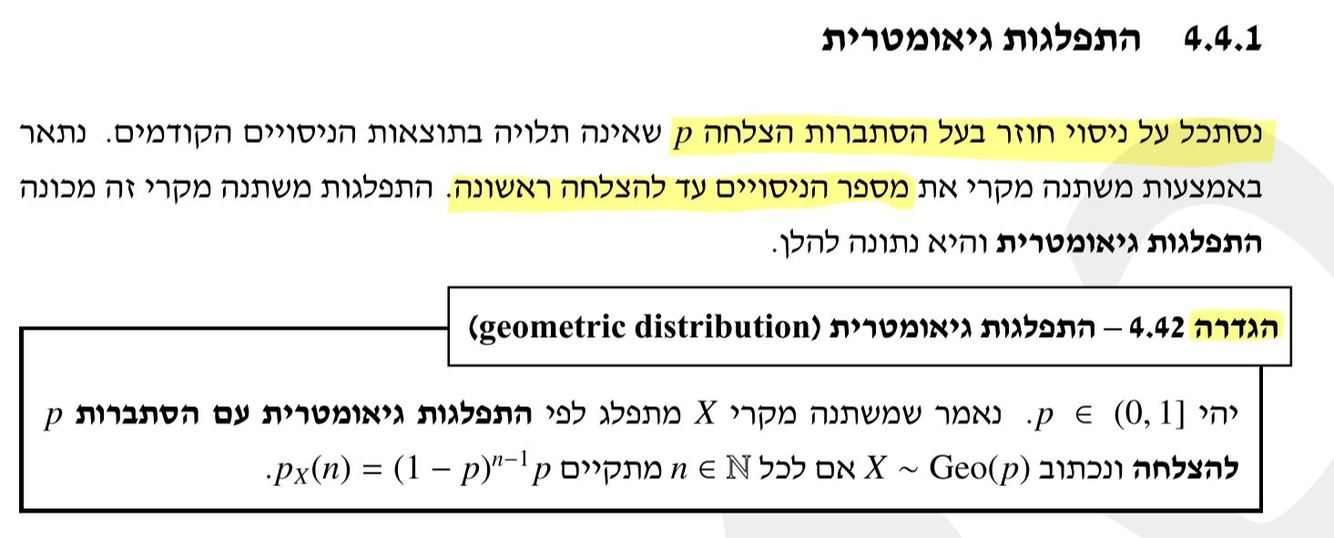 במשתנה מקרי גאומטרי: