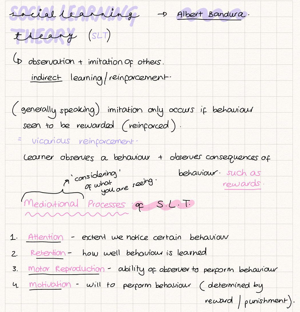 SLT: who came up with theory, briefly outline the theory and describe the 4 mediational processes: