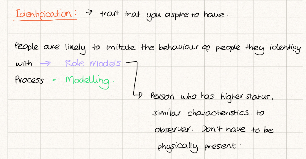 Imitation + motor reproduction + identification + role models
