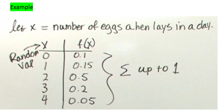 For example, let X = the number of heads you get when you toss three fair coins. The sample space for the toss of three fair coins is TTT; THH; HTH; HHT; HTT; THT; TTH; HHH. Then, x= 0, 1, 2, 3.