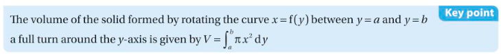 What is the formula for the volume of a solid, formed by rotating the curve x = f(y) between y = a/b, a full turn around the y-axis?