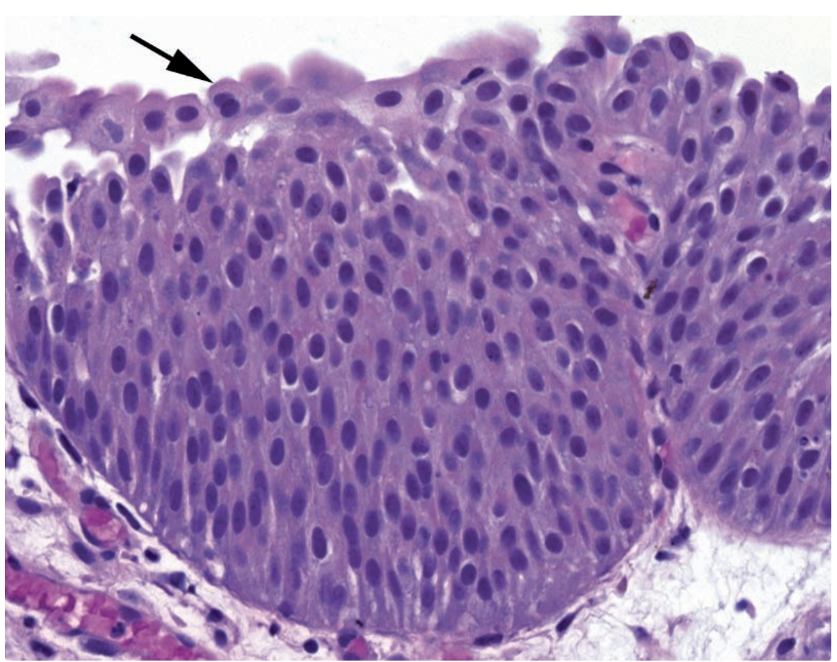 Papillary: Must be designated low-grade or high-grade, invasive or non-invasive. No “dysplasia” here.