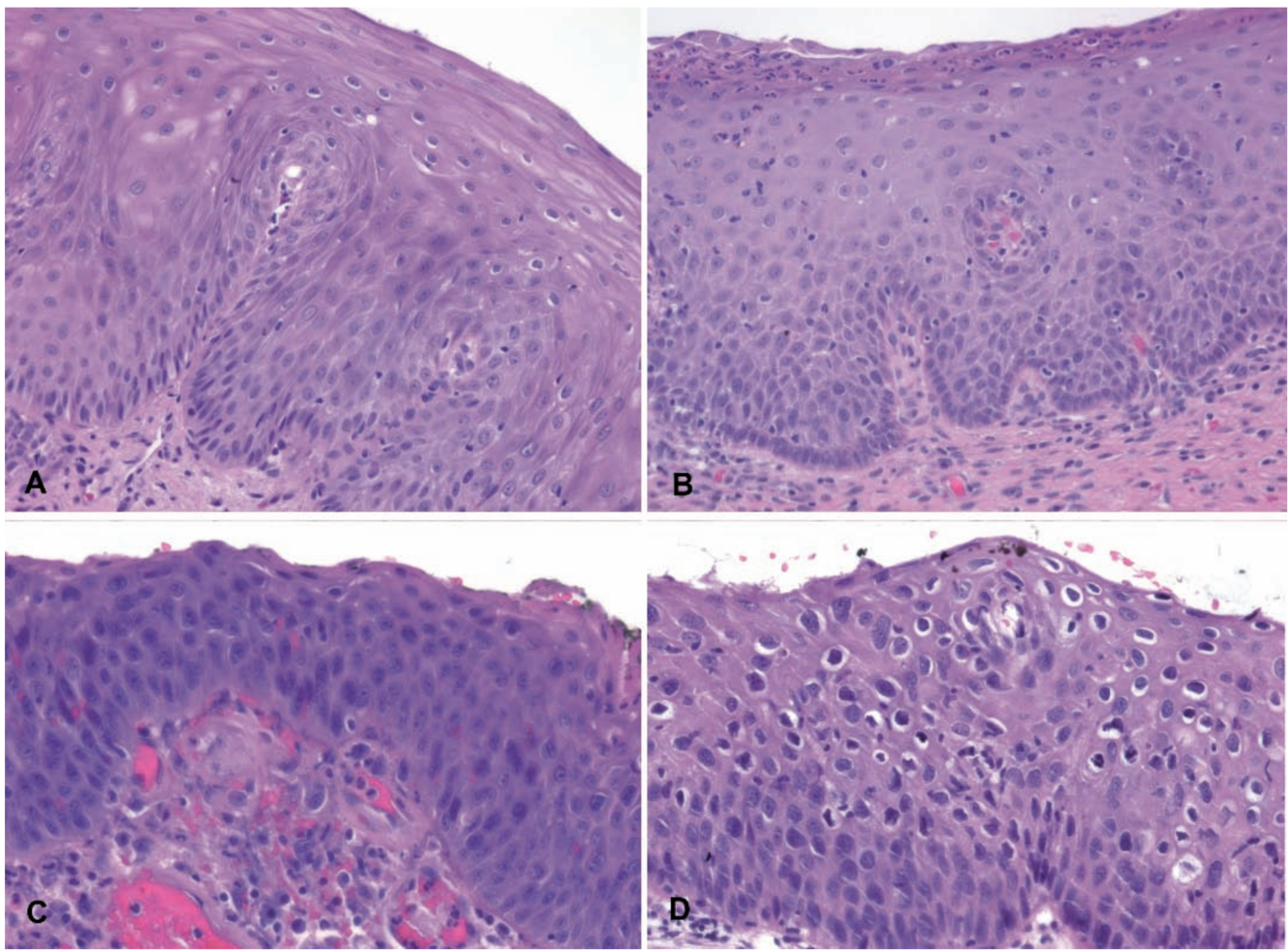 In the oropharynx and larynx, dysplasia tends to result in keratinization. “Severe keratinizing dysplasia” is more insidious as it can become invasive without being full-thickness.