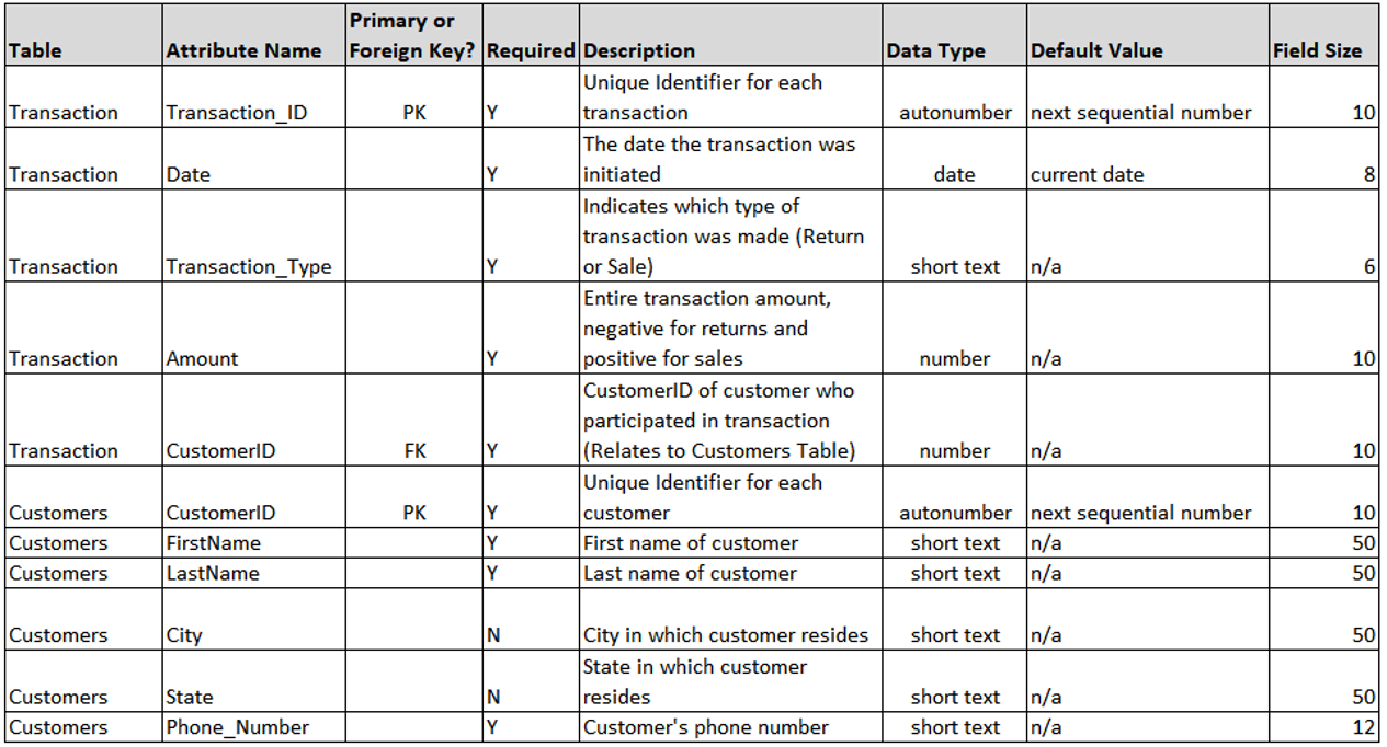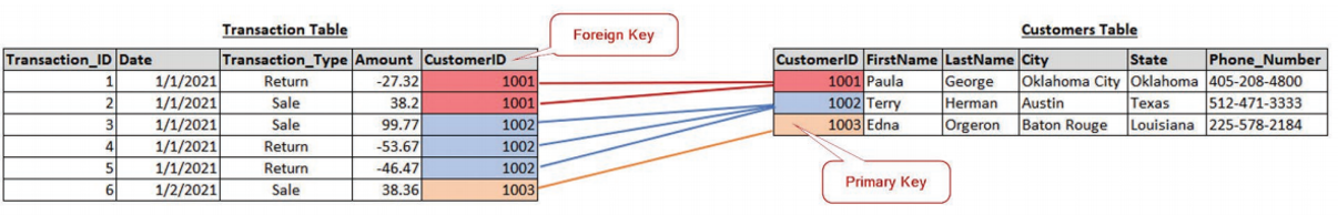 Unique identifier of each record that allows connection to other tables (think customer ID)