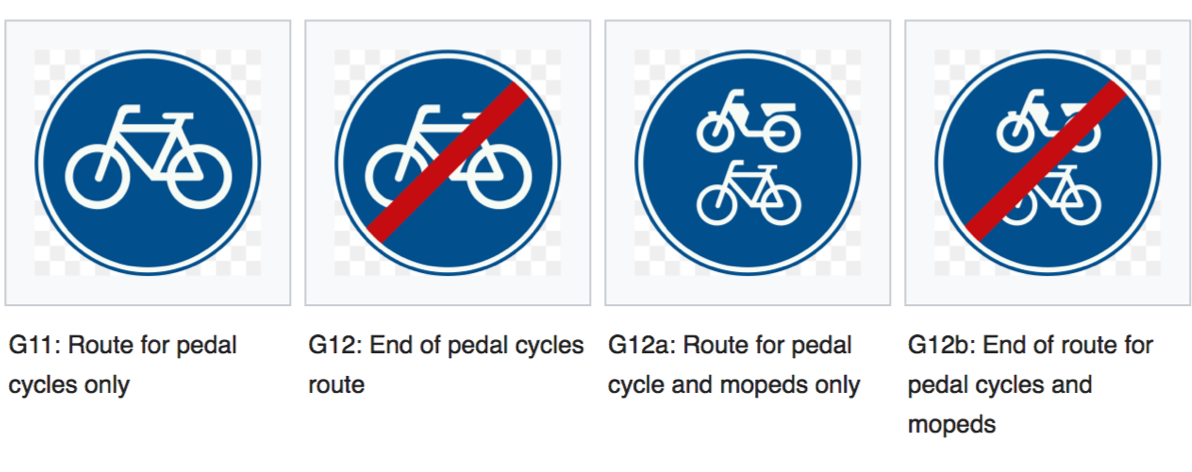 Depending on the traffic signs (show in the image) you know whether the moped must use the road.