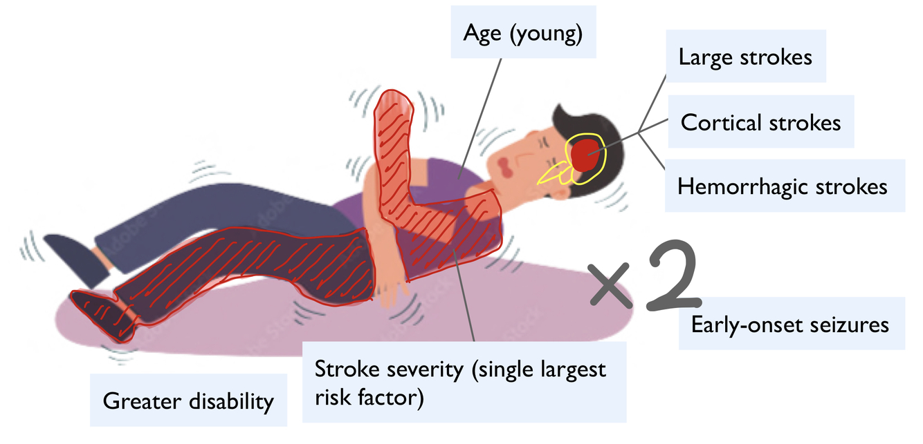 List 3 risk factors for late seizures post Stroke ππ EXAM
