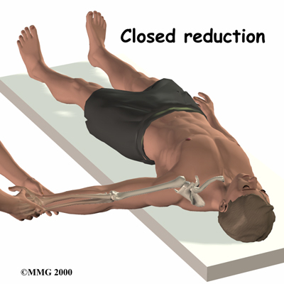 Injury to the upper chest can create a palpable defect in the region of the sternoclavicular joint, with posterior dislocation of the clavicular heads and upper airway obstruction. How do you reduce this injury?