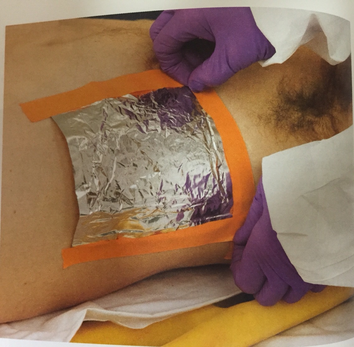 Temporary- A sterile occlusive dressing is placed over the wound with 3 sides taped down to provide a flutter valve.