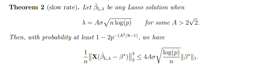 What is Theorem 2: the Slow Rate of the prediction error of the Lasso solution?