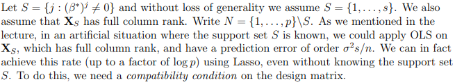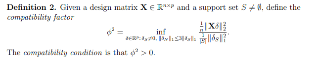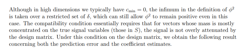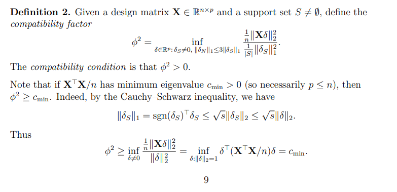 IF XTX/n has a minimum eigenvalue cmin 0, what do we know about the compatibility condition? How do we verify this?