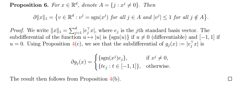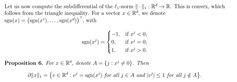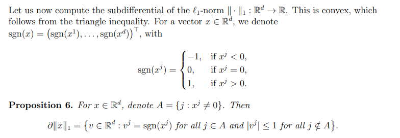 What is Proposition 6 relating to the subdifferential of the l1-norm ||.||?