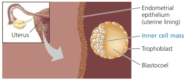 Blastula migrates and imbeds itself in the endometrium