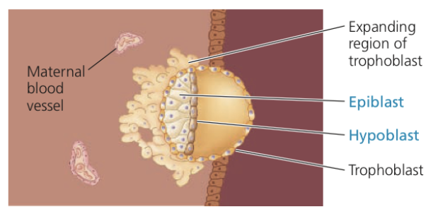 Trophoblastic cells interface between maternal blood supply and developing embryo