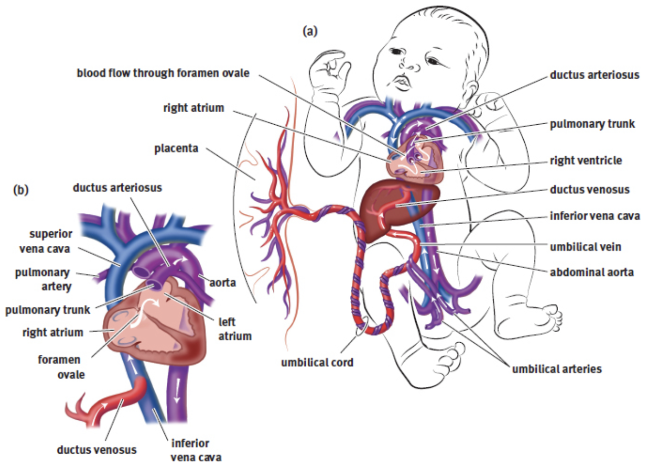 The liver is bypassed by the ductus venosus which shunts blood returning from the placenta via the umbilical vein directly into the vena cava
