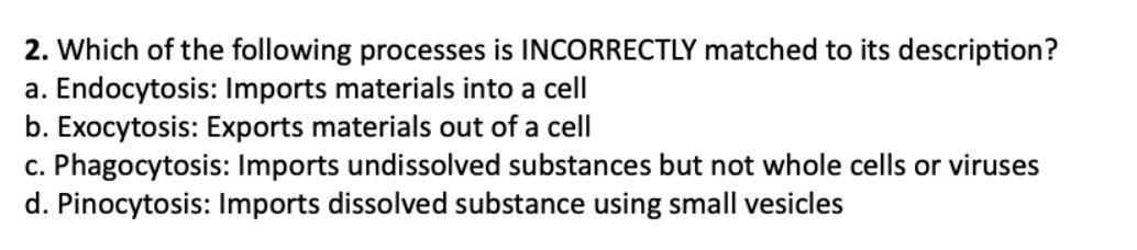 C. Phagocytosis: Imports undissolved substances but not whole cells or virus