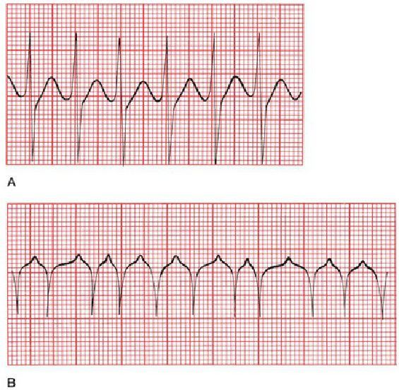 (A) Paroxysmal supraventricular tachycardia. ( B) Atrial fibrillation.