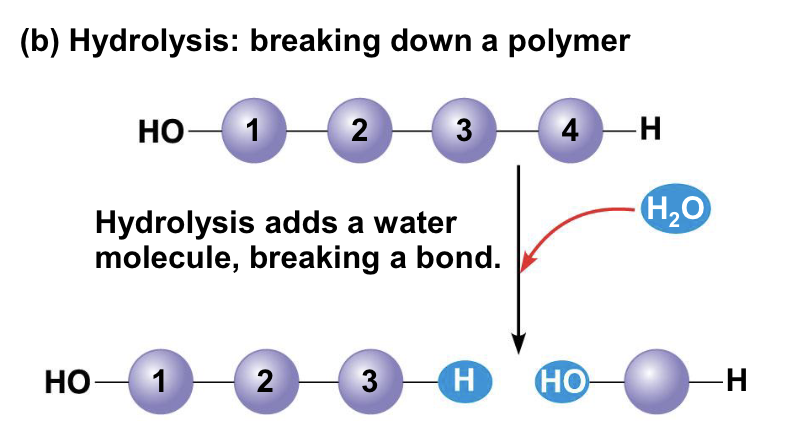 Disassembles polymers into monomers (H2O is put in)