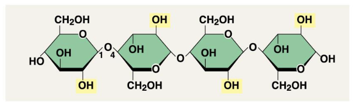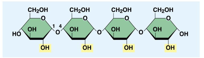 Starch: 1-4 linkages of alpha glucose monomers